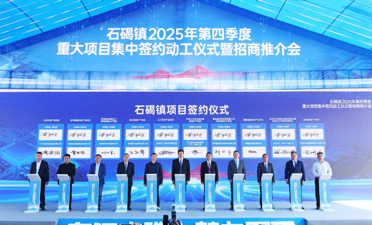 12月3日,東江之珠·魅力石碣——石碣鎮(zhèn)2025年第四季度重大項目集中簽約動工儀式暨招商推介會在同富智造地塊舉行。此次集中簽約項目19個,總投資約20.63億元,達產后預計年產值約56.85億元;新動工項目39個,總投資約23.7億元,其中產業(yè)類項目達產后預計年產值約30.8億元;竣工項目21個,總投資約10.9億元,其中產業(yè)類達產后預計年產值約13.3億元。鎮(zhèn)黨委書記香杰新,鎮(zhèn)黨委副書記、鎮(zhèn)長嚴正等鎮(zhèn)領導班子成員,相關企業(yè)、項目代表等出席活動。